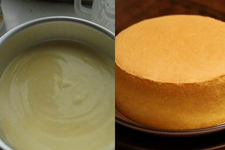 第三步,烤蛋糕。取一个大小适宜的蛋糕模,将蛋糕模内壁擦上少许油,有利于脱模。将打发好的蛋糊倒入到蛋糕模中,稍微震动一下蛋糕模,让里面的蛋糊表面平整光滑并将蛋糊中的大气泡排出。烤箱预热180度,将蛋糕模放入下层,关门烘烤大概40分钟,蛋糕就烘烤好了。
