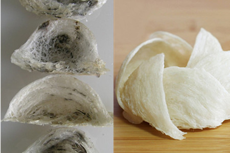 之后钻进偏高的山体洞穴等处,等待食物被胃部处理之后,由黏液腺吐出分泌物,再辅以羽毛等耗时半月之久才得以完成。一般来说燕窝外形犹如半月,或如同人耳。宽度约为6-7厘米。重量一般在12克。其具有的纹路形状犹如排列整齐的丝线。