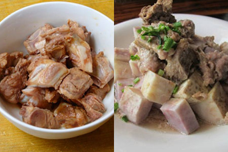 第九步:起锅后,将葱末洒在排骨和芋头上面,即可食用。