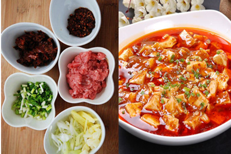接下来介绍一道重口味的麻婆豆腐。听这名字我就已经有麻辣的感觉,吃起来会辣成什么样呢?没错,这道菜就是靠辣出名的,不能吃辣的朋友还是放弃吧。这道菜的配料是关键,豆腐注意切的小一点。