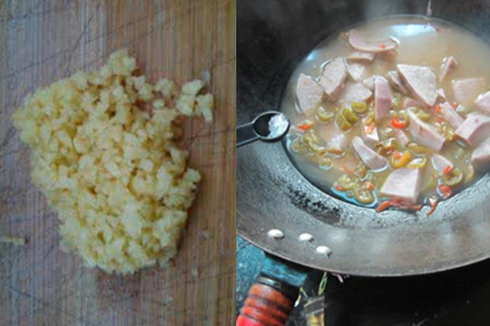 把葱和生姜剁成碎末,放在一旁备用。