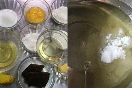 先准备好做年轮蛋糕的材料,即一百克左右的黄油、低筋面粉、砂糖,还有三个鸡蛋、两勺泡打粉、七十克左右的鲜奶,以及锡纸、卫生筷子。把黄油放在处于室温的环境中软化,鸡蛋、牛奶也要放在室温的地方,并且分类混合均匀再过筛。把软化的黄油倒入盆中,不断搅拌直到黄油变成软泥状,砂糖分成两到三次加入,不断搅拌均匀,并且使其稍微打发变白。