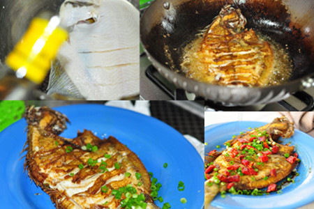 第二种,香煎多宝鱼。香煎多宝鱼的辅料主要是盐、胡椒粉、料酒、蒸鱼豉油、香葱和干红椒。首先将鱼处理干净后去腮去内脏在洗干净,同时在鱼背上划上几刀。撒上适量的盐、料酒、胡椒粉将鱼腌制十五分钟左右。接着,将炒锅热油烧熟,将腌制好的鱼放进去将鱼两面煎成金黄色。