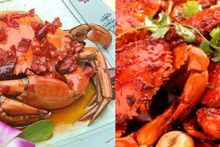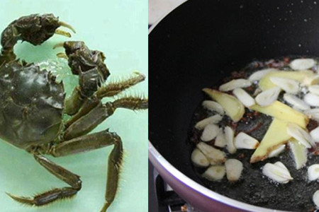 锅内重新倒入少量食用油,加热后放入花椒煸炒两分钟,然后再放入葱姜蒜、辣椒等,小火爆香。可以加入少量的辣椒酱,再添入一些海鲜汁。小火焖煮两分钟后将炸好放凉的河蟹倒入锅中,加入适量的鸡精、五香粉等调料,河蟹出锅之前需要用淀粉勾芡。需要注意河蟹翻炒的时间不易过长,否则会影响河蟹香脆的口感。
