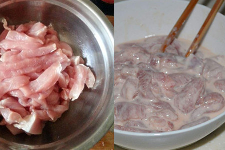 首先,我们需要准备一块里脊肉,然后将它洗干净并切成条状备用,待它沥干水分之后,我们还要将它放入碗中,同时在里面加入盐和料酒等调味品,然后用筷子将它搅拌均匀,并腌制半个小时左右。