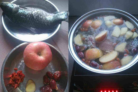 孕妇食谱二:苹果红枣鲫鱼汤制作材料:鲫鱼1条、苹果1个、红枣20克、枸杞10克、生姜适量。制作步骤:首先把鲫鱼去鳞去内脏后,洗净切块,苹果削皮切成块,生姜切片备用。接着热锅倒油,放入鲫鱼翻炒。待鲫鱼两面变成金黄色后,装盘待用。然后煮一锅清水,把所有食材倒入锅内,加盐、料酒和鸡精调味。盖好锅盖,炖2小时左右即可。