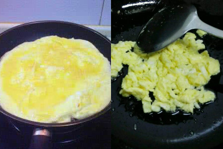 做法如下:将培根、烤肠、洋葱、土豆都切成小丁,黑松露切成特别小的丁,越碎越好。之后放在盘子中备用。将土豆丁放在热锅里简单炸一下,然后沥干油分。接着将鸡蛋磕入碗中,搅拌成混合蛋液,热锅中放一点点油,下蛋液,形成蛋饼之后翻炒成小的鸡蛋快即可盛出来备用。
