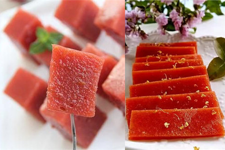 除了冰糖葫芦和山楂罐头,山楂糕也是一种人们非常喜欢的食品。生活在北方的人们,应该都吃过山楂糕。这种小食品不仅酸甜可口,而且口感软糯,就连老人和小孩儿也非常适宜使用。山楂糕除了具有生津开胃的作用,对于小儿积食也具有很好的功效。经常大吃大喝的人们,也应该的多吃些山楂糕,它不仅可以能促进消化,还能分解脂肪,防止肥胖的发生。