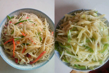 在日常生生活中,我们基本可以随处可见土豆的身影,也有很多小吃也是用土豆制作而成的,例如薯条、薯片等等深受广大群众的喜爱。其实土豆不仅可以切丝炒着吃,而且可以炖着吃,味道也是很不错的呢,其中土豆丝更是受到了许多人的追捧。但是炒土豆丝虽然简单易学,却也有着各种各样的做法。下面小编就为大家推荐土豆丝的2种做法吧。