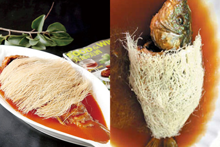鲤鱼焙面则是久负盛名的一道著名豫菜。河南大厨有幸为慈禧太后和光绪皇帝烹饪此菜,慈禧太后玩心大发,把焙面盖在鱼身上的做法被很多人模仿烹饪。鲤鱼焙面精选流经开封的黄河河段出产的鲤鱼,油锅炸,用白糖、姜末、料酒等调料调味,大火收汁浇勾芡,铺上用油炸过后的拉面,鱼儿仿佛熟睡一般,酸甜酸甜,欲罢不能。