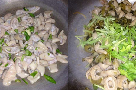 猪大肠的做法一:制作材料:猪大肠500克、青椒2根、芹菜200克、酸菜200克、生姜适量。制作步骤:首先用生粉把猪大肠搓洗干净后,再放入烧开的水中汆烫一下,捞出切块,青椒切斜条,芹菜切段,生姜切片备用。然后热锅倒油,放入青椒和姜片爆香,再倒入猪大肠翻炒。3分钟后,倒入酸菜和芹菜,加盐和酱油调味。十分钟后,即可出锅。