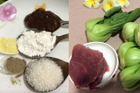 第一步,准备原材料。主料是猪里脊肉和白菜,佐料有油盐酱醋、黄豆酱、白砂糖、胡椒粉、淀粉和鸡精。选择主材料的时候,我们要注意。里脊肉要挑选新鲜颜色偏红的,用手指稍微按压一下,好的里脊肉手感柔软顺滑,按压下去能够立马回弹,并且除了肉的腥香味没有其他的味道。白菜要选择带瓢儿的,像上海青就很好。