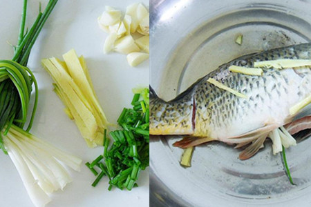 食材:鲤鱼1条、豆瓣酱、白胡椒粉、料酒、十三香、白糖、姜、葱、香葱、酱油、鸡精。