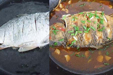 炒锅内注入油,开火烧热,放入鲤鱼煎制,把鲤鱼煎成金黄色即可。用锅里剩下的油把葱丝、葱白和蒜末爆香后关火,加入适量豆瓣酱炒香,倒入500毫升清水,烹入酱油、香醋、白糖和料酒,开火烧开。烧开之后,放入煎好的鲤鱼,加入一勺十三香,盖上盖子,中火焖煮五分钟。五分钟后,揭开盖子,撒上葱花即可。【女物原创未经允许,谢绝转载!】