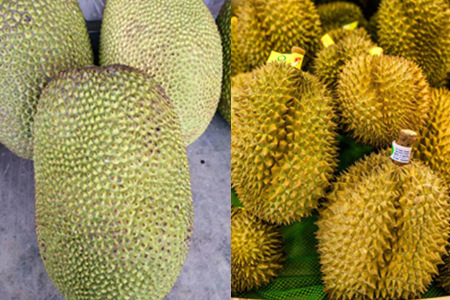 菠萝蜜和榴莲都是非常受大家欢迎的水果。但是由于它们俩外形长得实在是太相似了,导致了很多人都分不清楚这两种水果。有时候甚至将这两种水果混为一谈,这是不对的。不同的水果有不同的营养价值,因此区分出它们的不同是很重要的。那么这两种水果到底有哪些不同呢?