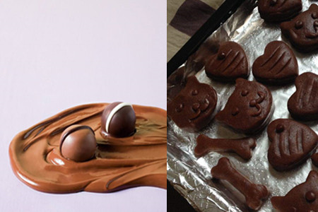 将巧克力融化,然后加入在面团中搅匀。将黄油和巧克力融化在一起也是不错的方法,相较于我们介绍的也会更加简单一些。你可以根据自己的需求进行选择。使用不同的模具压制出不同的饼干形状,然后放入烤箱中。注意烤制时间的长短,需要时刻掌握饼干的动态。