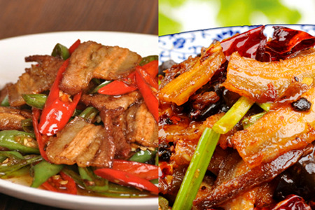 回锅肉也是家喻户晓的一道川菜。在开水中放入适量的料酒、姜片、葱段以及花椒。再将五花肉放进开水中煮大约十五分钟左右的时间,煮好后将五花肉取出沥干并切成较薄的肉片备用。将青蒜切成段备用。在锅中放适量的油后将肉片倒进锅中,转至小火煎。等五花肉开始变色并且变形时就加进郫县豆瓣酱、甜面酱一起翻炒。将料酒顺着锅的边缘倒入,加入适量的水、酱油、盐以及糖进行调味。接下来加入切好的青蒜翻炒后即可出锅。