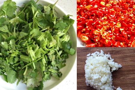 接着就准备一些基础的配料,当然少不了的就是香菜了。
