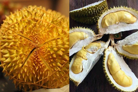 接下来是从果肉上来区分,榴莲的果肉一般有拳头的大小,一个榴莲里面的果肉颜色是淡黄色,数量不会很多,大概有十多块果肉。