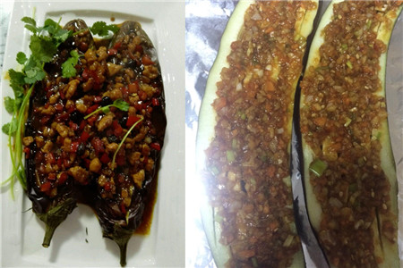 肉末茄子的做法非常,首先我们来看看第一种,首先我们准备茄子,把茄子竖着对半切开,不是从横着切,这个大家要弄清楚,然后用锡纸包着放进烤箱烤15分钟,取出来茄子变得非常软了。