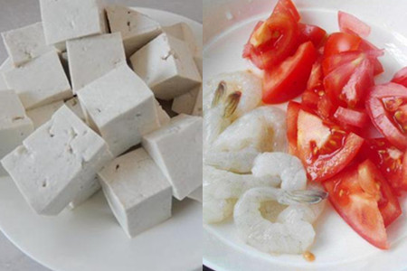 第一步,挑选好食材。番茄豆腐虾仁所需要的食材有番茄、豆腐、鲜虾,料酒、食用盐、食用油、香醋、胡椒粉和鸡精。番茄选择容易炒出汤汁的沙质番茄,这里主要需要的是番茄的汤汁,所以番茄不能买错。另外番茄挑选的时候选择稍软一点的,当然不能选择表面有撞痕的番茄,这种番茄虽然也是软的,但是内部可能已经坏掉了。