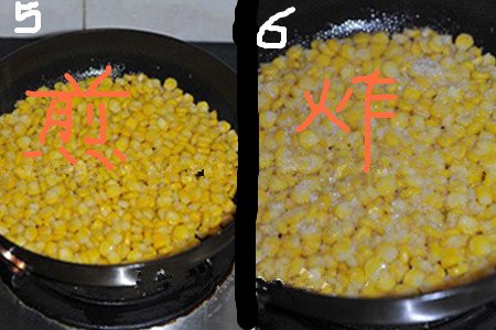 第三步,烙玉米饼。在平底锅中加入适量的植物油烧熟后,倒出一半至碗中以备后用。将大火转为小火,将玉米粒到进去,用锅铲将玉米粒在锅中摊平。五分钟左右,等到玉米粒都粘连在一起成为一个大饼后,将先前倒出的一半油倒进锅中,转中火炸玉米,让其变得金黄酥脆就可以关火了。