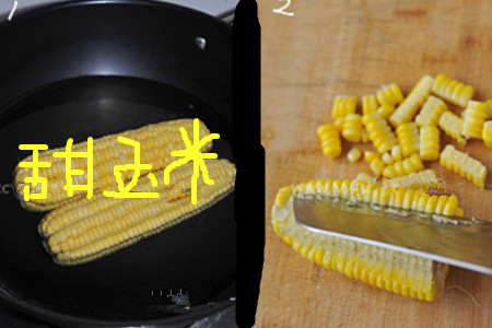 第一步,煮玉米。将刚掰开的玉米放进清水锅中煮上五六分钟左右,即将玉米煮熟就可以了。将煮熟的玉米捞起来沥干放凉后,用刀具或者用手将玉米粒从玉米棒上剥下来。将剥下来的玉米粒散开成一粒一粒的,不要让它们黏在一起。