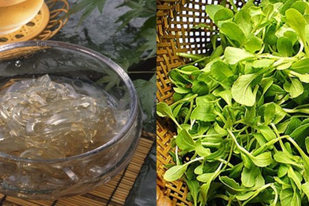 鸡毛菜又称石花菜,是百姓的日常叫法,因其形似鸡毛而得名。鸡毛菜的功效非常多,尤其适合很多容易容易上火的来说,有很好的败火作用,同时对于咽喉肿痛等多种疾病都有很好的治疗功效。而且,鸡毛菜中富含膳食纤维,有利于人体肠胃的蠕动,对便秘者和想要减肥的人都能起到一定的作用。鸡毛菜的做法有很多,其中鸡毛菜凉粉受到了很多人的喜欢。