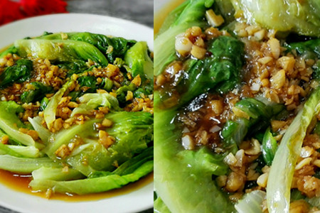 在这里我们需要注意的是,玉米淀粉一定要用凉水搅拌,否则会使它凝固成块状。之后,我们需要在锅里面加入水,然后还要在里面加入几滴油和盐,之后我们可以将洗干净的生菜放入锅中用水焯几分钟,然后捞出来备用。接下来,我们需要准备一些蒜头,然后将它们做制作成蒜末,并放入油锅中炒香。