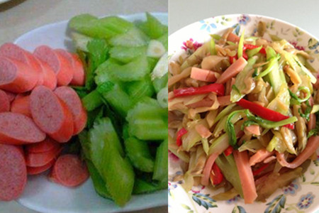 红肠炒西芹有着非常好的营养价值,而且也是一道厨房小白都可以掌握的家常菜。准备一段红肠和一些新鲜的西芹,然后将芹菜切段备用。红肠先下锅翻炒,目的是让肉质沾上油脂,会更加好吃。然后加入芹菜一同翻炒即可。