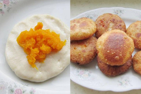 把双手再抹上植物油,揭开面团得保鲜膜,再将面团揉一揉,然后揪一块,搓成圆形,用手掌心压扁,取适量南瓜于面皮上,封口搓圆再压扁成饼状。往锅里倒入适量食用油,烧热至七八成,下糖饼炸制,糖饼炸成两面金黄色并且发硬,即可捞出控油,稍微晾凉即可食用。