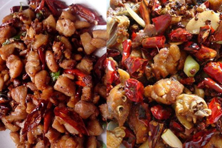 这里需要注意,辣椒很容易炸糊了,所以火候一定要控制好,辣椒炸糊了不仅会让糊味影响口感,而且也炸不出辣椒油,没有香辣味。炸好辣椒花椒油以后,将炒好的鸡肉丁倒入锅中,改大火,用锅铲不停翻炒锅中食材,待鸡肉丁被辣椒油上色变成亮红色,撒入一点鸡精,翻炒均匀就可以关火出锅了。