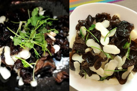 第三步,炒木耳。将锅清洗干净并擦干水分,开大火将锅烧热,锅中加入适量的油,将生姜、大蒜切成碎末放入热油中翻炒出香味,再将木耳倒入锅中翻炒,加入适量的食盐继续翻炒,木耳炒熟以后会变得更软更糯,木耳炒熟与否不是很容易看出来,所以可以用筷子夹一块尝一下生熟状况。