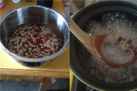 赤小豆是很难煮烂的,因此我们应该提前一晚浸泡,这样第二天煮就容易了,薏米只要泡一个小时就可以了,如果想煮得烂又省时间,用高压锅就非常好。把赤小豆和薏米洗干净放进高压锅煮20分钟,然后关火,等到高压锅可以自然开盖就可以了,喜欢甜的可以加入冰糖。