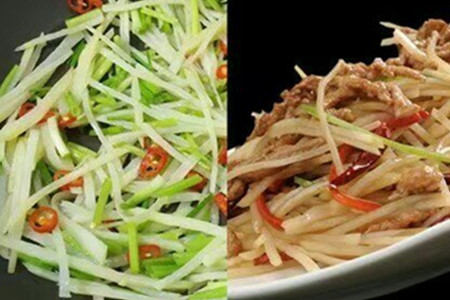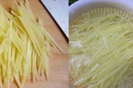 土豆丝是一道非常大众的家常菜,几乎是每家每户都会做这道菜。接下来小编就为大家介绍土豆的家常做法。首先,我们要准备的原材料有土豆、尖椒、盐、里脊肉、葱花、姜、油、蒜。接下来将土豆洗净之后切成丝,切的丝可以不用特别的细,但是一定要切得均匀。土豆丝切好了之后就放在清水里浸泡,浸泡过的土豆丝会很硬,炒出来也更脆。