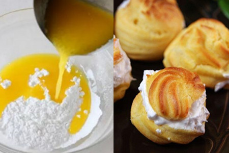 泡芙是大家都喜欢吃的一种甜点。首先,将面粉倒入碗中,加入适量的泡打粉,然后向面粉中加入少量的水,并且边搅拌边加入水,当面粉和好的时候,停止加水。