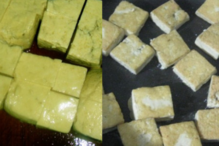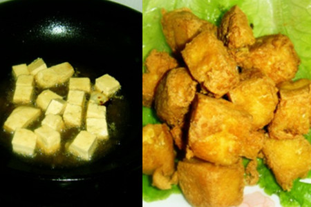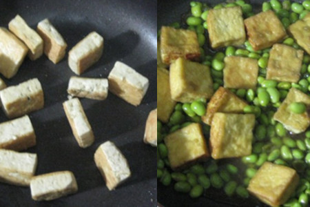 方法二与现在的季节相呼应,现在毛豆正当市,就来做道毛豆炒臭豆腐,与方法一相类似,首先准备适量的臭豆腐,然后切成块状备用。锅里放入适量的食用油等油热到七成左右后,将事先备好的臭豆腐入锅炸直至两面金黄然后捞出来。将其放到笊篱上空干多余的油脂,然后在锅里剩余适量的油来炒毛豆,炒至毛豆的颜色发生改变,然后
