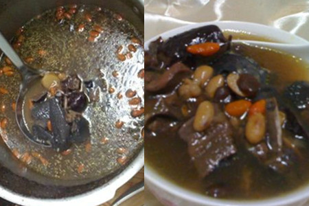 然后加入枸杞进去继续熬煮15分钟,等到黑豆都变软了,莲子肉可以入口即化了,放一些冰糖进去就可以吃了。