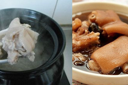 准备一口砂锅,将猪蹄块和黑豆放进锅里面,倒入合适的水,慢慢的熬。大约需要熬90分钟左右,等到猪蹄上的的肉质松软的时候,就制作完成了。