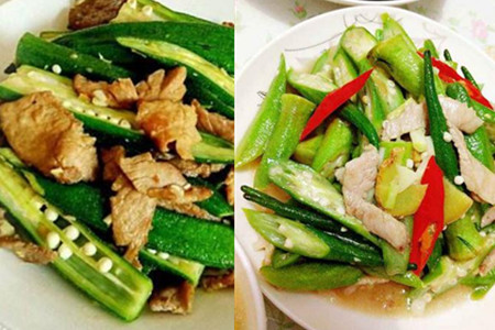 这道秋葵炒肉也就做好了。秋葵炒肉是荤菜,所以要趁热吃,荤油放冷以后吃了是会拉肚子的。所以接下来就和家人一起享用这道健康又美味的秋葵炒肉吧。【女物原创未经允许,谢绝转载!】