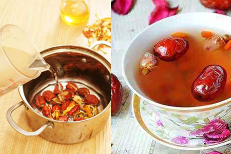 但是也有一个需要注意的地方,就是不能在红枣汤温度太高的时候放入蜂蜜。当温度高于60摄氏度时,蜂蜜中所含有的生物活性酶就会在高温环境下遭到破坏,造成维生素、矿物质等营养成分有所损失,破坏了蜂蜜原有的营养价值。另外,高温环境下冲开的蜂蜜口感也会变差。
