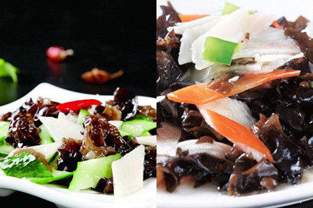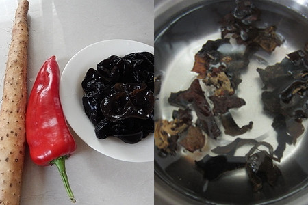 我们常看见的山药分为两种,一种是表面有很长的毛,而且比较细,这一种是用来炖汤比较好的,口感比较软滑。而另一种是比较粗的,外表毛比较短,用来炒菜比较好,口感较爽滑,而且比较脆。在挑选木耳的时候选择颜色较黑的,看上去比较干透的,而且一朵较为完整的是比较好的。