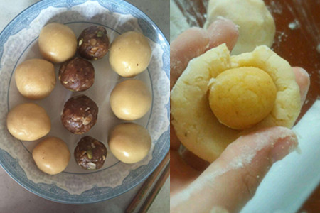 不过需要注意的是,我们一定要将它揉成比面皮要小的球形。接着,我们需要将馅料放在面皮上面,然后我们要使面皮包住馅料,并将它放到一个模具。然后,我们需要将成型的月饼放到烤箱之中,并提前在上面涂上一层蛋液。【女物原创未经允许,谢绝转载!】