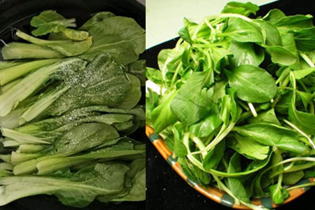 鸡毛菜在生长过程中喷洒了很多农药,而且细小的叶片中叶可能有虫卵幼虫,用盐水浸泡鸡毛菜,不仅能够冲洗鸡毛菜表面的农残还能有效杀死幼虫,所以这一步很重要。将盐水浸泡过的鸡毛菜捞起来再放在清水中清洗一下,如果鸡毛菜比较脏要多清洗几遍,将清洗干净的鸡毛菜放在沥水篮中沥干水分。