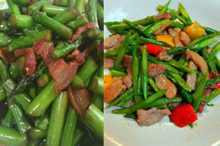 到这里,这道芦笋炒肉也就做好了。喜欢芦笋清爽口感的一定不能忘记了,芦笋炒之前要焯水,芦笋都是枝干,不容易炒熟,所以焯水不仅可以让枝干脆爽可口,还能让芦笋熟透便于炒制。芦笋用荤油炒会比较好吃,所以选择肉的时候,要么选择五花肉要么选择肥瘦都有的后腿肉,将肥肉炸油,瘦肉炒菜也是可以的。【女物原创未经允许,谢绝转载!】