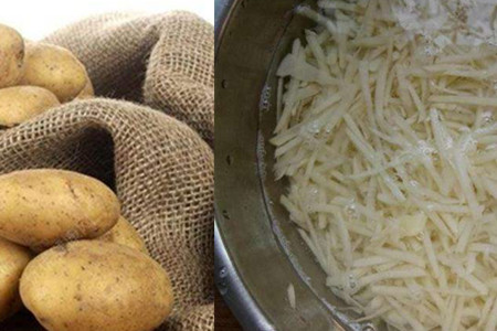 土豆制作前要先去除外皮,然后清洗干净,洗干净的土豆用工具插成丝,然后放进水里,这样可以有效防止土豆氧化变色。大概泡十分钟就可以了,然后拿出土豆丝沥干水分,放进干净的盆中。放盆里放入少量的孜然粉、黑胡椒和少量的精盐,然后因为筷子搅拌均匀。再往盆里加入少量面粉,兑水搅拌成均匀的面糊,也可以加一些香葱,可以提高土豆饼的香味。