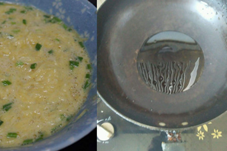 还有另一种做法就是将土豆清洗干净后放在蒸锅内大火蒸熟,蒸熟的土豆去除外皮,用棍子搅拌成泥状放凉备用。然后往土豆泥放一些小胡萝卜丁、淀粉、适量的精盐和打好的鸡蛋,因为土豆泥不容易被搅拌均匀,所以可以洗干净手后进行搅拌,搅拌好的土豆泥就可以正常的煎制了。【女物原创未经允许,谢绝转载!】