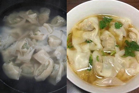 第四步,煮馄饨。锅中加入适量的清水,大火煮开后转中火让水继续沸腾,将包好的馄饨倒入锅中,馄饨皮薄肉嫩,所以很容易就会煮熟,煮熟以后的馄饨会自然浮起来。这时候准备一个小碗,碗中放入适量的紫菜和虾皮,撒上食盐和鸡精,在锅中舀一勺水倒入碗中融化碗中的佐料,并将馄饨捞起来放入碗中,撒上葱花就可以了。