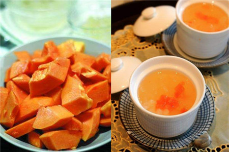 木瓜因为营养丰富,很多甜品都会用它打破,木瓜蒸燕窝也是女生喜欢吃的,在挑木瓜的时候不要太熟的,半生熟较好。