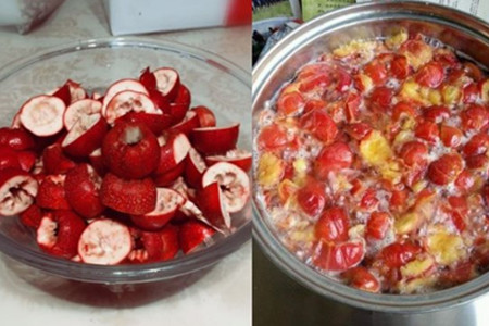 步骤2、去完核之后,把它们放入事项准备好的锅里面。